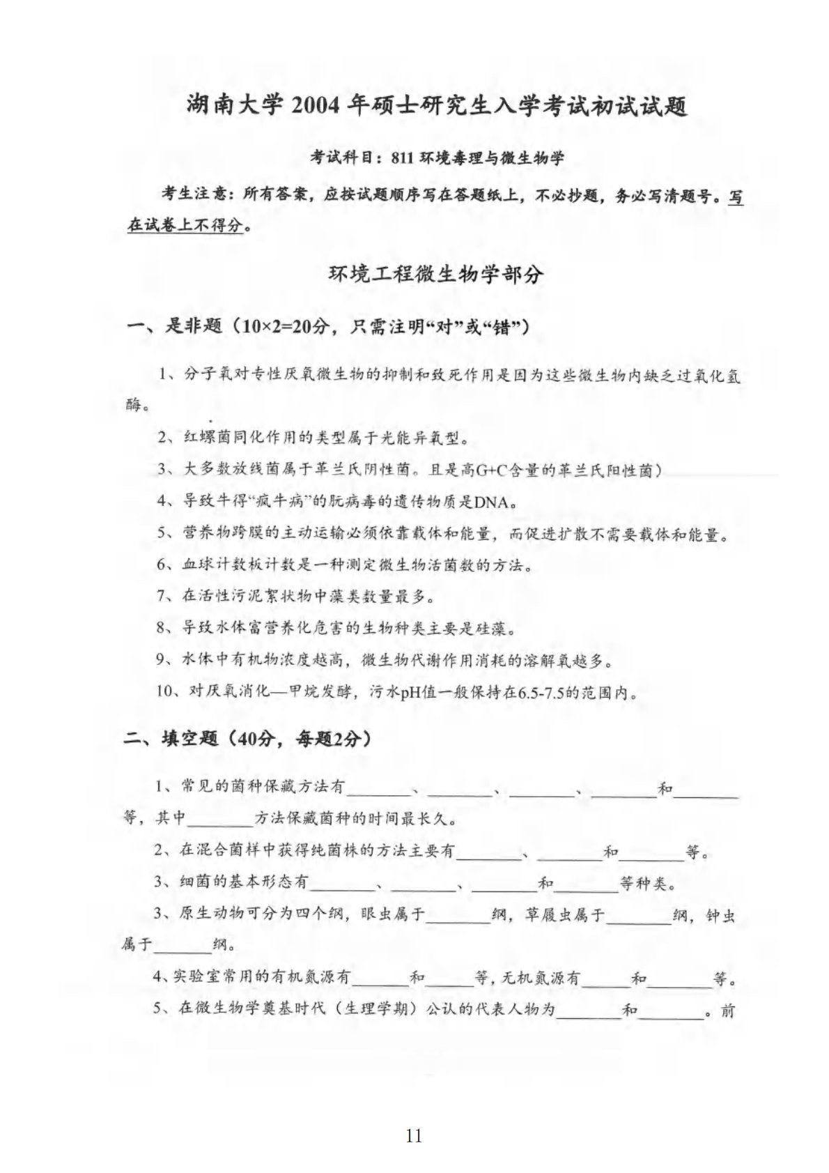 湖南大学811环境毒理与环境工程微生物综合2004年真题