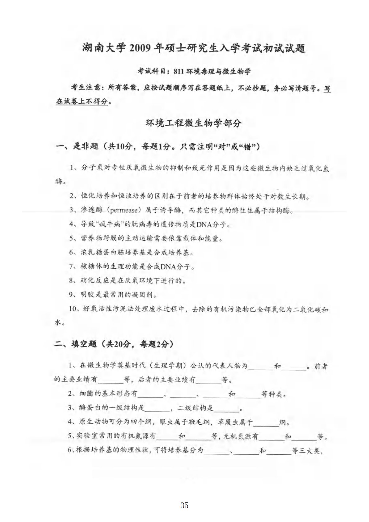湖南大学811环境毒理与环境工程微生物综合2009年真题