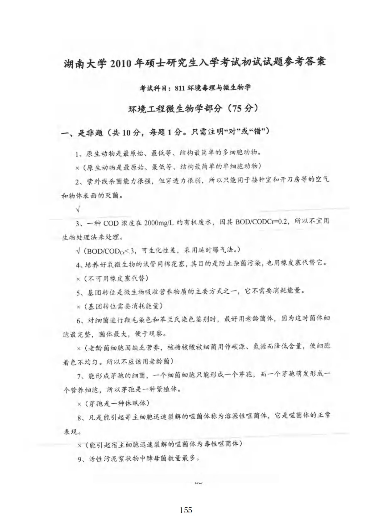 湖南大学811环境毒理与环境工程微生物综合2010年真题答案