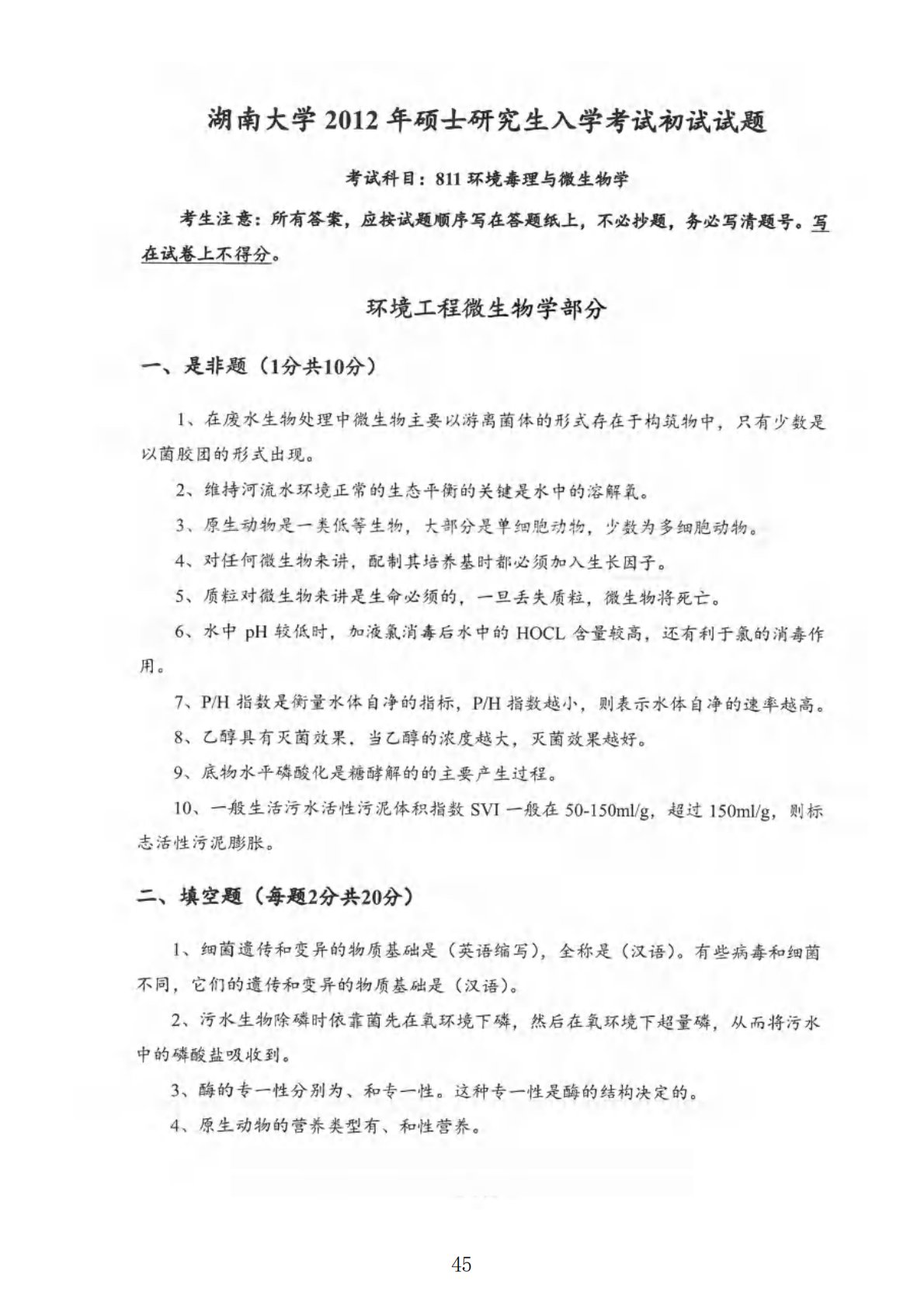 湖南大学811环境毒理与环境工程微生物综合2012年真题