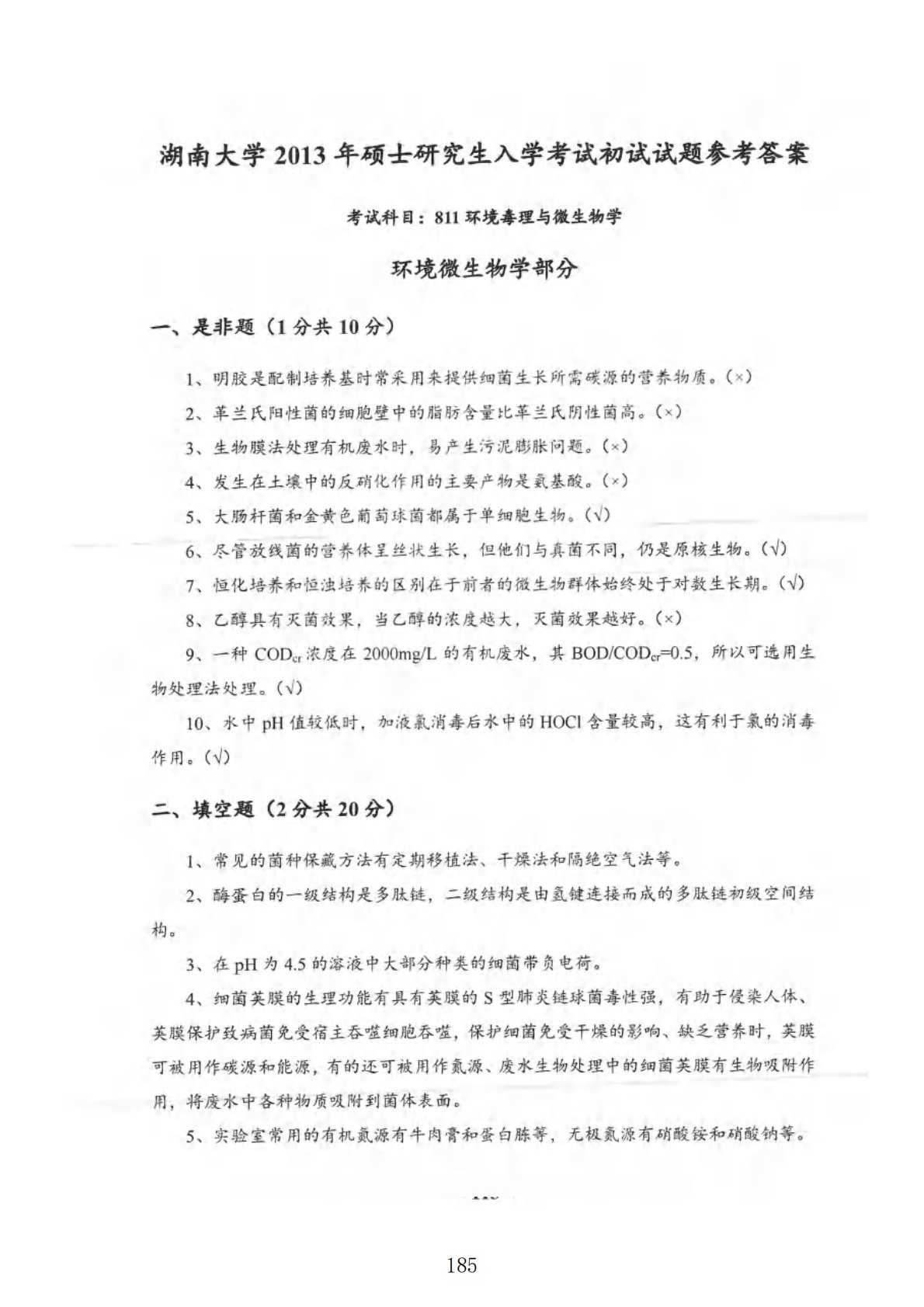 湖南大学811环境毒理与环境工程微生物综合2013年真题答案