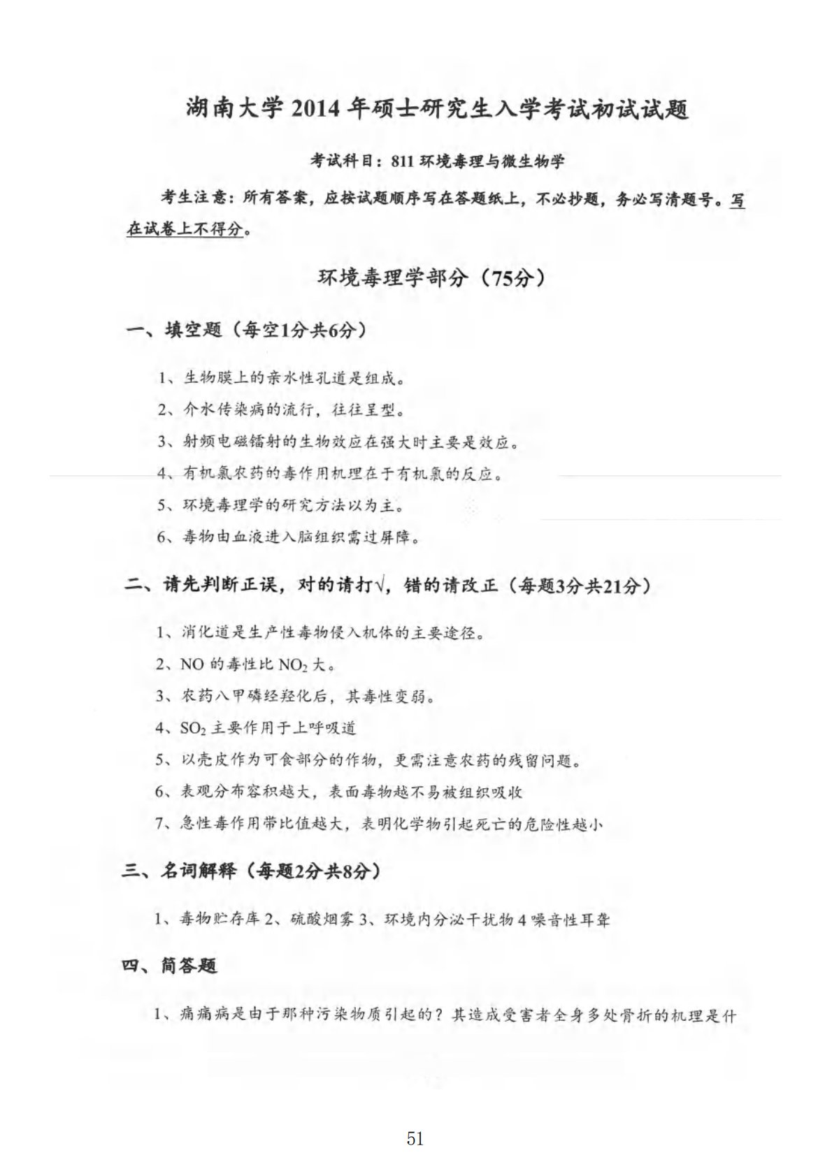 湖南大学811环境毒理与环境工程微生物综合2014年真题