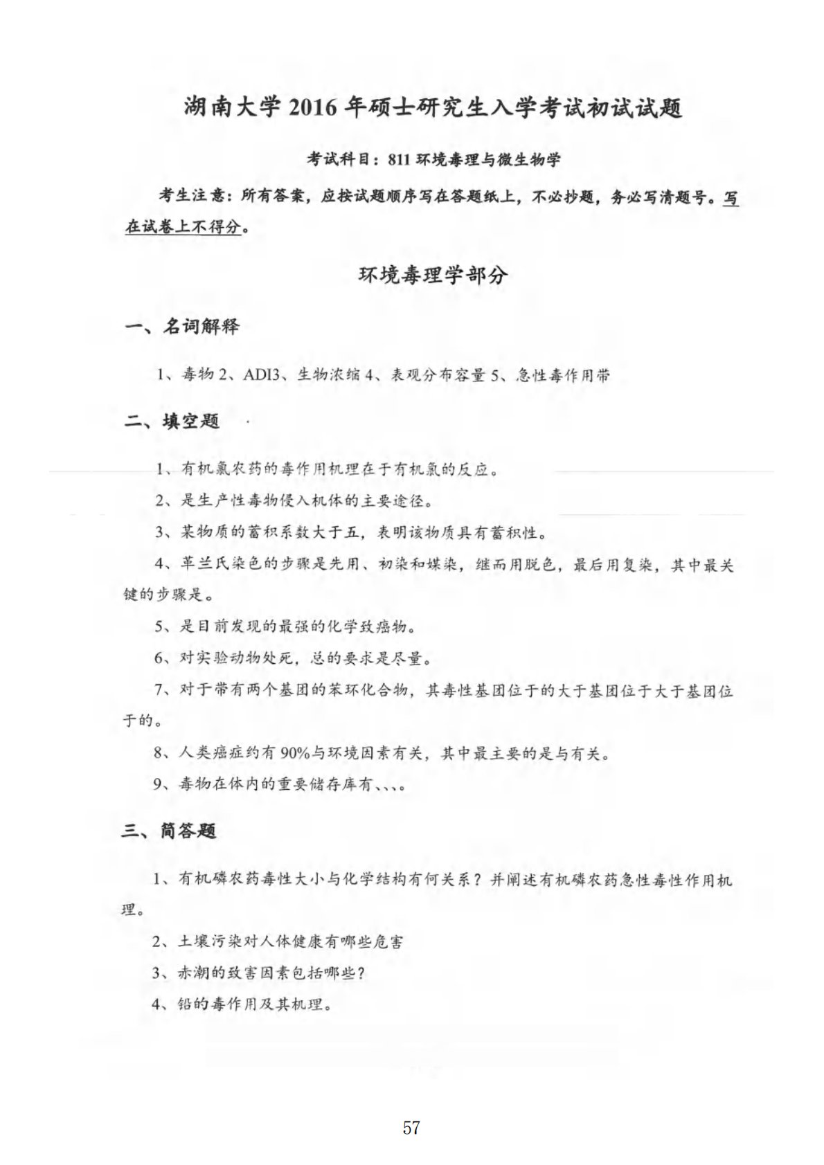 湖南大学811环境毒理与环境工程微生物综合2016年真题