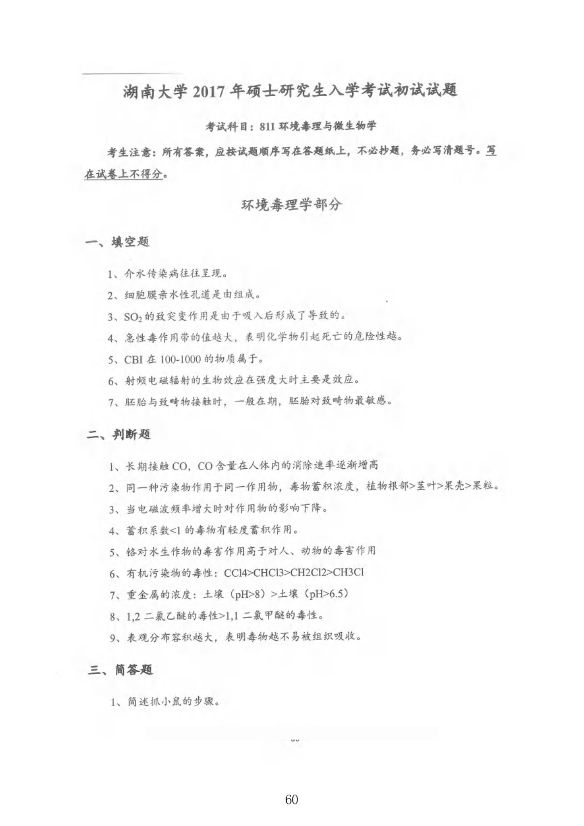 湖南大学811环境毒理与环境工程微生物综合2017年真题