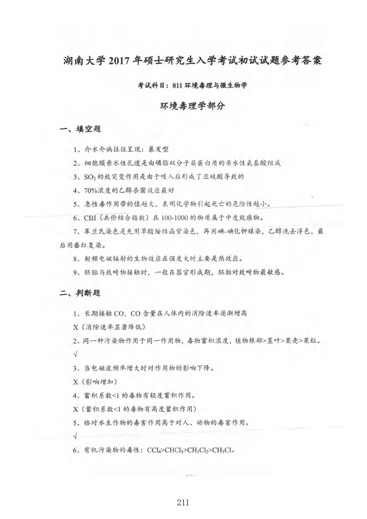湖南大学811环境毒理与环境工程微生物综合2017年真题答案