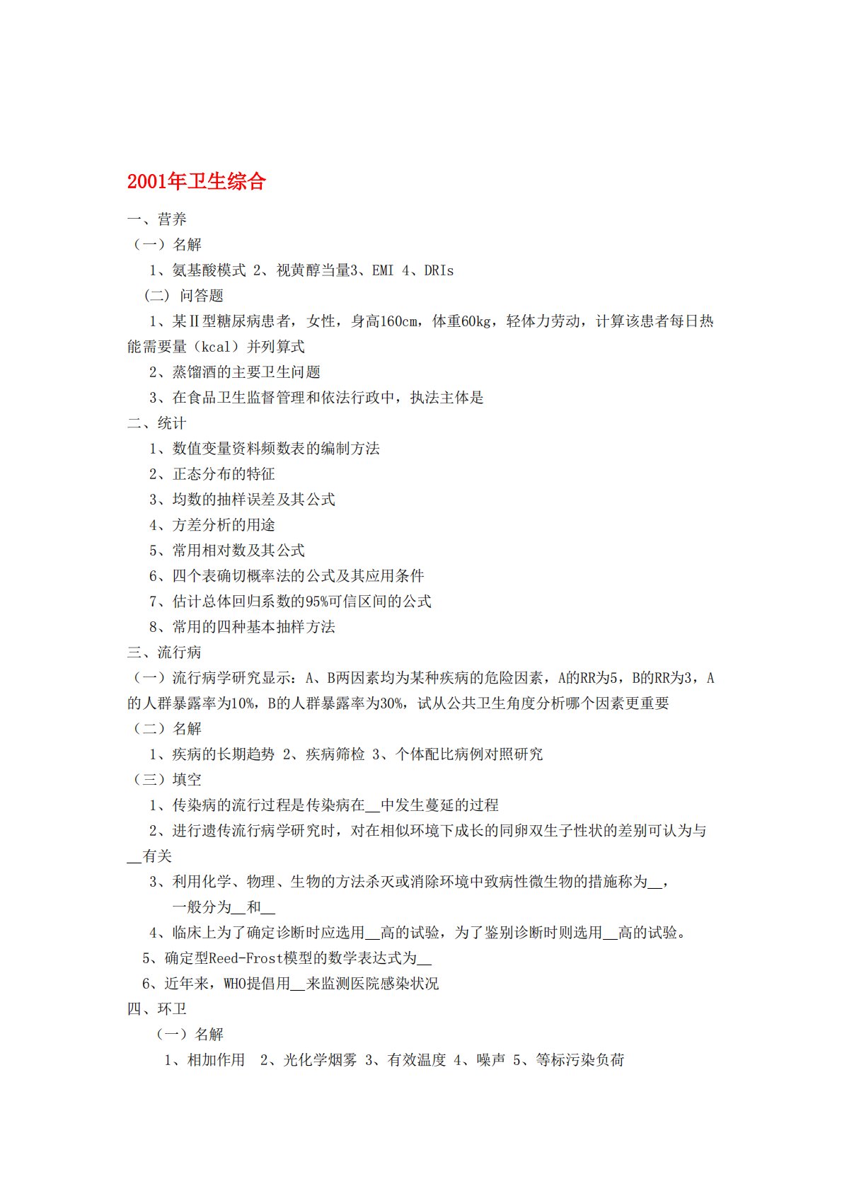 复旦大学353卫生综合(专硕)2001年真题