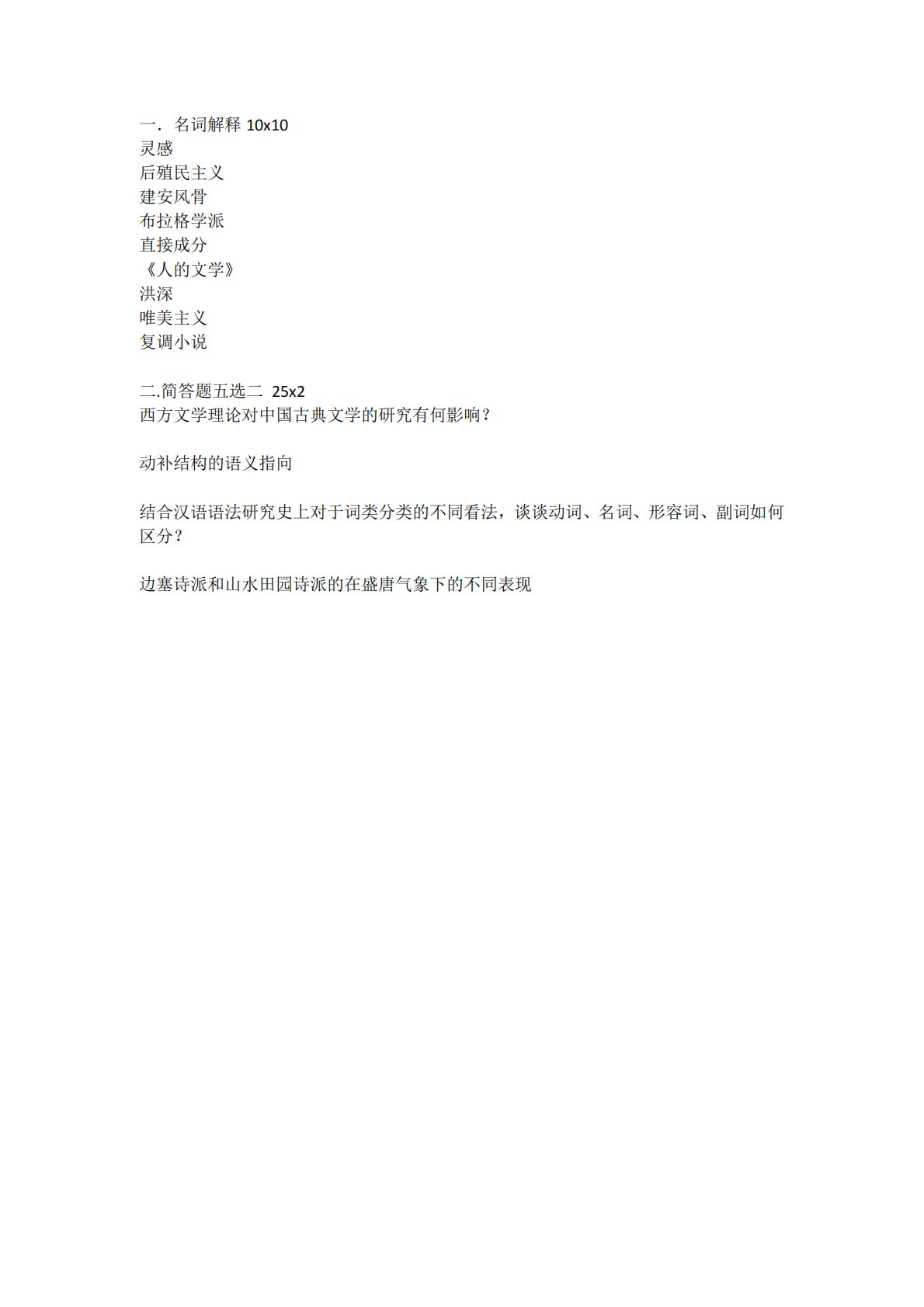 复旦大学705文学语言综合知识2023年真题回忆版