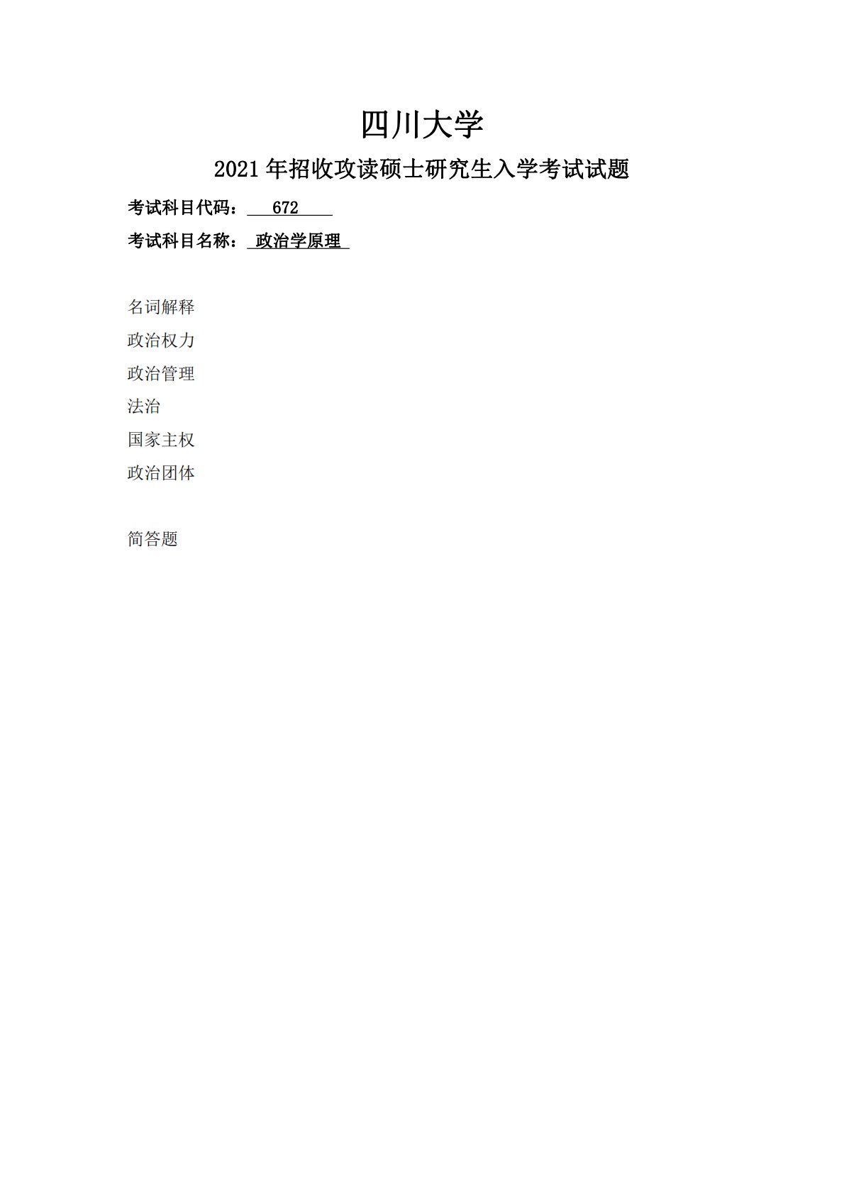 四川大学672政治学原理2021年真题