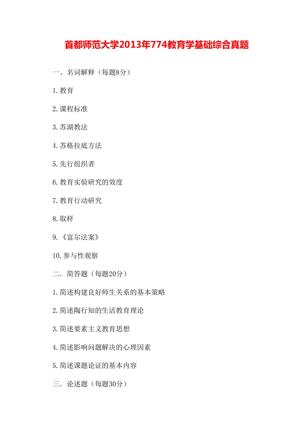 首都师范大学774教育学基础综合2013年真题