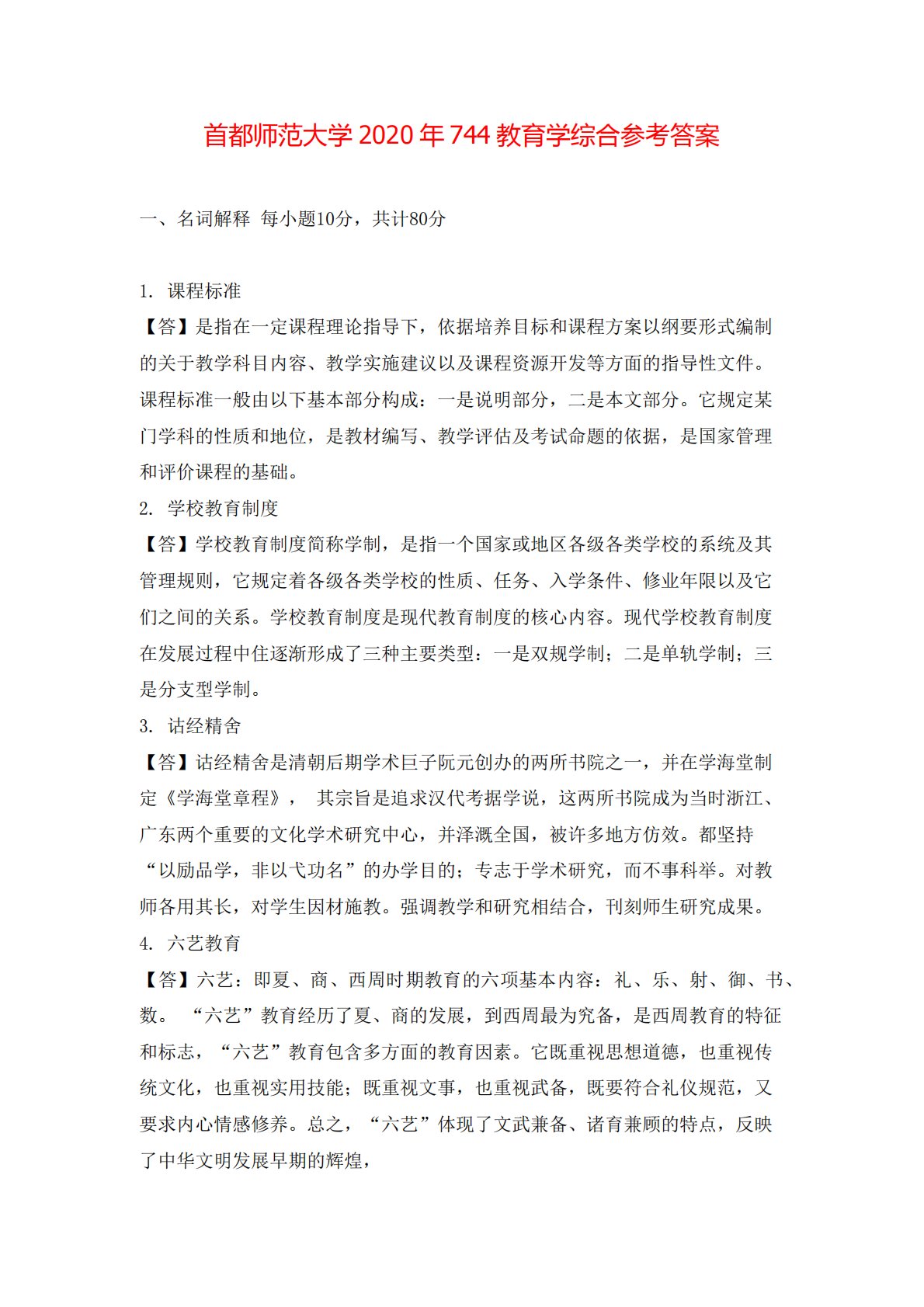首都师范大学774教育学基础综合2020年真题答案