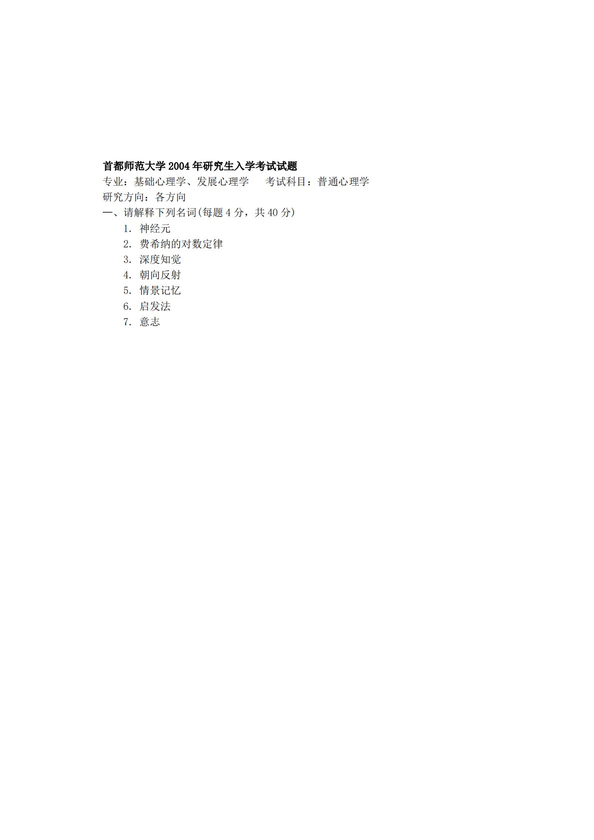 首都师范大学347心理学专业综合2004年真题(普通心理学)