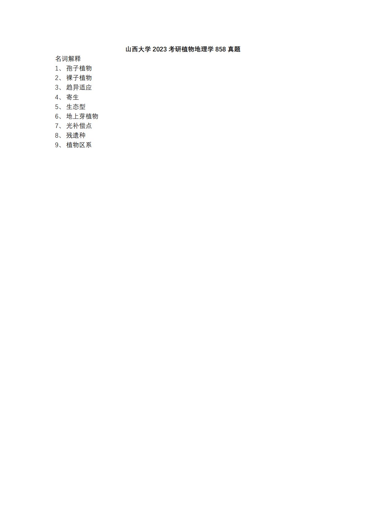 山西大学858植物地理学2023年真题