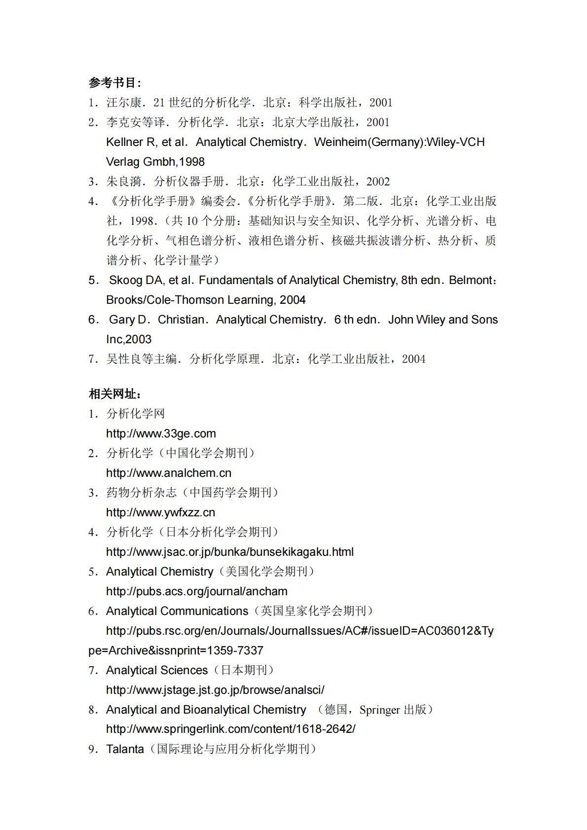 沈阳药科大学614分析化学参考书目