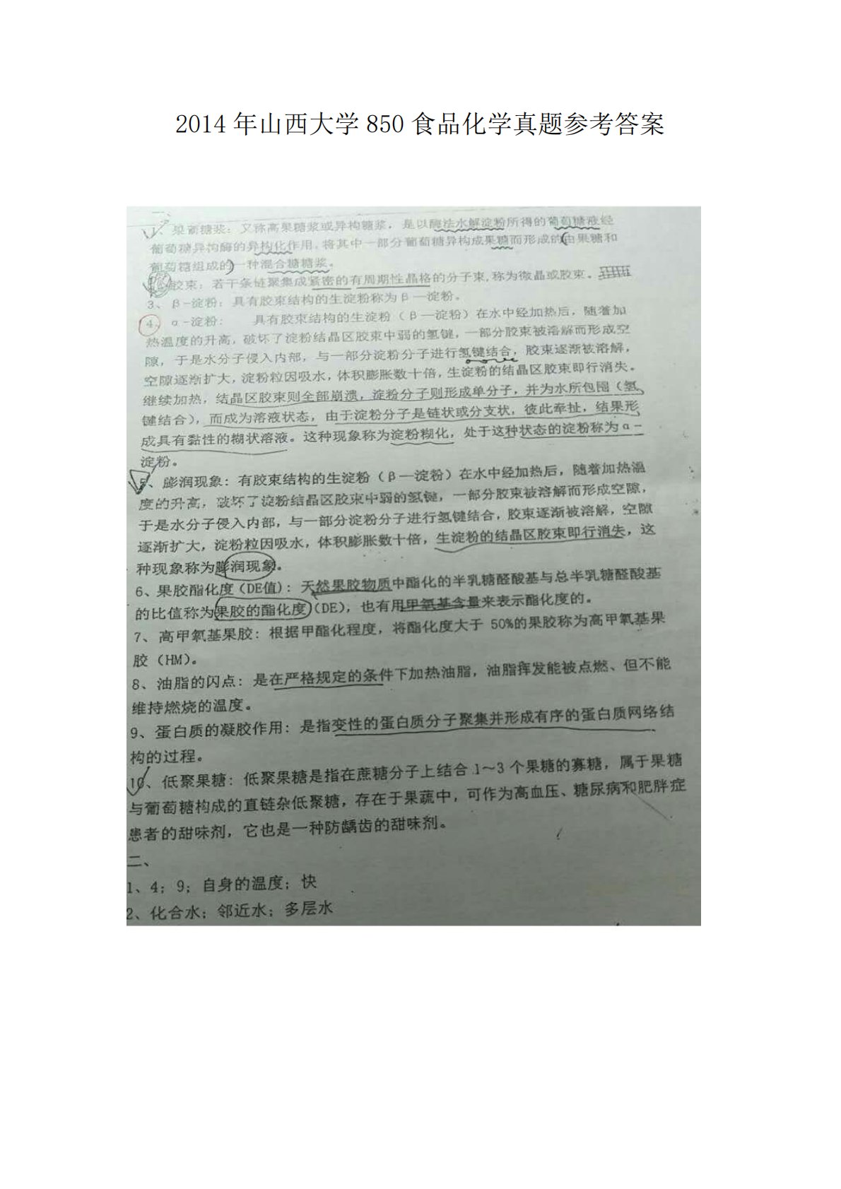 山西大学850食品化学2014年考研真题答案解析