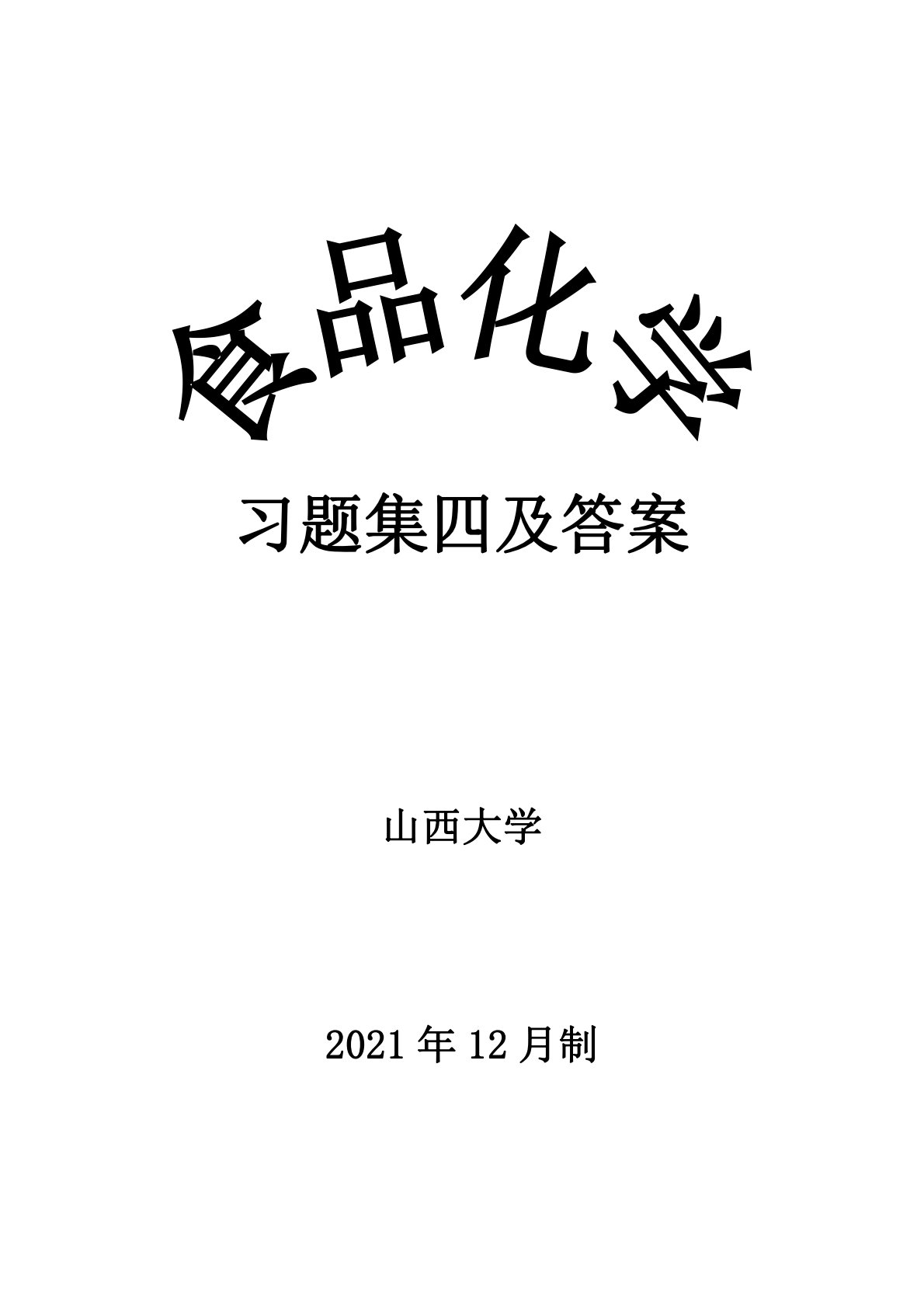 习题集四及答案山西大学2021年12月制第二章水分一、名词解释1.结合水2.自由水3.毛细管水4.水分活度5.滞后现象6.吸湿等温线7.单分子层水8.疏水相互作用二、填空题1.食品中的水是以、、、等状态存在的。2.水在食品中的存在形式主要有和两种形式。3.水分子之间是通过相互缔合的。4.食品中的不能为微生物利用。5.食品中水的蒸汽压p与纯水蒸汽压p0的比值称之为,即食品中水分的有效浓度。6.每个水分子最多能够与个水分子通过结合,每个水分子在维空间有相等数目的氢键给体和受体。7.由联系着的水一般称为结合水,以联系着的水一般称为自由水。8.在一定温度下,使食品吸湿或干燥,得到的与的关系曲线称为水分...