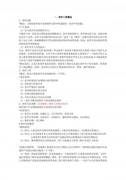 一.软件工程概述1.软件危机*概念:计算机软件的开发和维护过程中所遇到的一系列严重问题。*产生原因:(1)这与软件本身的特性有关。与硬件不同,软件是计算机系统的逻辑部分,而不是物理部分。软件样品是产品,试制过程也是生产过程。软件不会因使用时间过长而“老化”或“磨损”;在编写程序代码并在计算机上运行之前,很难测量软件开发过程的进度和评估软件质量。因此,软件开发过程的管理和控制是非常困难的。(2)软件开发人员的弱点。首先,软件产品是人们思考的结果,所以软件产品的水平最终在很大程度上取决于软件人员的教育、培训和经验积累。合作开发大型软件通常需要很多人,即使对于一个软件开发人员深入研究领域的应用程序,...