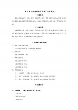2024年《传播理论与实践》考试大纲Ⅰ.考查目标考察对传播的定义、功能、类型、传播过程、媒介、受众及效果的认知与理解,要求考生比较系统地掌握本科阶段所学全部内容,具有运用传播学理论进行初步分析和解决问题的能力。.6393$\B.0;Gý&é63PÝ,´²%ÃPÝ>Ÿú1V',´£3+ÃPÝE÷0;,´/ýQ?Ã/nJPÝ,´3+55´ÃPÝ,´×fÃÂû,´Ï7-ÃG,´2«»Ã¡ýPÝxÌ,´3Pã¾PÝxÌ,´/ý*6AêÃúA-Âû×J.D0¦,´...