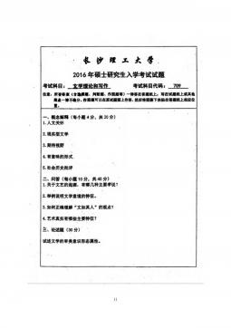 长沙理工大学709文学批评与写作2016年真题答案