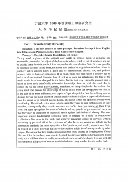 宁波大学861英汉互译2009年真题
