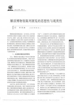 MainContentsNo.3£¬2013ÄÏ·½ÎÄÎï20133()½â¶Á²©Îï¹Ý³ÂÁÐÕ¹ÀÀµÄ˼ÏëÐÔÓë¹ÛÉÍÐÔÎIJ©½²̳²©Îï¹ÝµÄ³ÂÁÐÕ¹ÀÀÊÇÔÚÒ»¶¨¿Õ¼äÄÚ£¬ÒÔѧÊõÑо¿×ÊÁϺÍÎÄÎï±ê±¾Îª»ù´¡£¬ÒÔչʾ¿Õ¼äÉ豸ºÍ¼¼ÊõΪƽ̨£¬°´ÕÕÒ»¶¨µÄÖ÷ÌâÐòÁкÍÒÕÊõÐÎʽ½øÐÐ×éºÏ£¬ÊµÏÖÃæÏò´óÖÚ½øÐÐ֪ʶÐÅÏ¢ºÍÎÄ»¯´«²¥£¬¾ßÓÐÒ»¶¨Ë¼ÏëÐԺ͹ÛÉÍÐÔµÄÎÄ»¯´´Ô쵱ǰ²©Îï¹ÝµÄ³ÂÁÐÕ¹ÀÀÀíÄî...