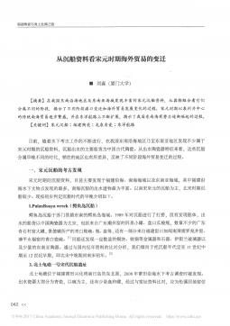 福建陶瓷与海上丝绸之路从沉船资料看宋元时期海外贸易的变迁■刘淼(厦门大学)【摘要】在我国东南沿海地区及东南亚海域发现丰富的宋元沉船资料,从器物组合看它们分属不同的阶段,揭示了不同阶段港口变迁和海外贸易发展变化的过程。宋元时期以泉州为中心的传统南海贸易逐步繁盛,并在东洋航路上不断扩展,揭示了我国东南海商势力逐渐崛起的过程。【关键词】宋元沉船;福建陶瓷;龙泉青瓷;东洋航路目前,随着水下考古工作的不断进行,在我国东南沿海地区乃至东南亚地区发现不少属于宋元时期的沉船资料,沉船出水的主要船货为中国古代陶瓷。从出水陶瓷器特征来看,这些沉船分属早晚不同的时代,销往...