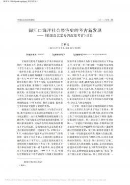 £ÛÊÕ¸åÈÕÆÚ£ÝÖйúÉç»á¾¼ÃÊ·Ñо¿¶þÒ»¶þÄêµÚ¶þÆÚÃö½¿Úº£ÑóÉç»á¾¼ÃÊ·µÄ¿¼¹Åз¢ÏÖ¸£½¨Á¬½¶¨º£Íå³Á´¬¿¼¹Å¶ÁºóÍõÐÂÌì(ÏÃÃÅ´óѧÀúʷϵ£¬¸£½¨ÏÃÃÅ)£ÛÖÐͼ·ÖÀàºÅ£Ý£ÛÎÄÏ×±êʶÂë£Ý£ÛÎÄÕ±àºÅ£Ý()¶¨º£Íå³Á´¬¿¼¹ÅÊÇÎÒ¹úˮϿ¼¹ÅÊÂÒµ³õ´´ÆÚµÄÒ»ÏîÖØÒª¹¤×÷£¬ÑµÁ·ÁËÎÒ¹ú×îÔçµÄÁ½ÅúˮϿ¼¹ÅרҵÈËÔ±£¬ÎªÎÒ¹úˮϿ¼¹ÅÊÂÒµÅàÑøÁËÒ»ÅúÖмá...