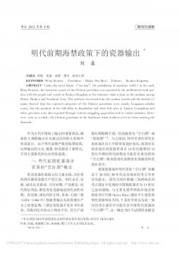 考古2012年第4期★ùîÐìü}-ùZÌŸ¦/¥L{*刘淼1oM:üÔLZÌÔ9o¦SKEYWORDS:MingDynastyPorcelainsHaijin(SeaBan)TributesRyukyuKingdomABSTRACT:Underthestricthaijin(“seaban”,theprohibitionofmaritimetraffic)intheearlyMingDynasty,themaritimeexportoftheChineseporcelainswasoperatedinthemultilater...