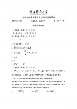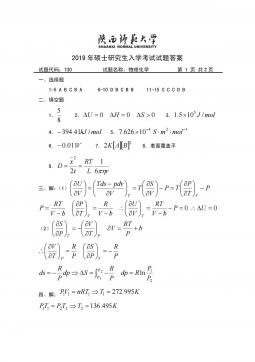 陕西师范大学730物理化学(含结构化学)2020年真题答案