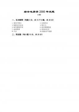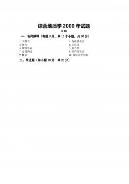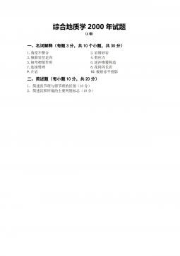 中国地质大学(北京)809综合地质学2000年试题(A)