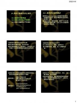 2022-9-81分子生物学教研室文建雷10原核生物基因表达调控10.1基因表达调控概述10.2原核生物转录水平的调控10.3原核生物翻译水平的调控分子生物学教研室文建雷10.1基因表达调控概述基因表达(geneexpression)是指储存遗传信息的核酸序列经过一系列步骤表现出其生物功能的整个过程。基因表达包括:基因经转录、翻译产生有生物活性的蛋白质的过程,以及ncRNA的基因经转录和加工等过程。分子生物学教研室文建雷①基因表达调控是生命的必然过程原核生物对环境的适应,相关的应答真核生物的细胞分化,组织特化,个体发育以及环境对个体表型的影响都是基因表达的结果分子生物学教研室文建雷②基因表达调...