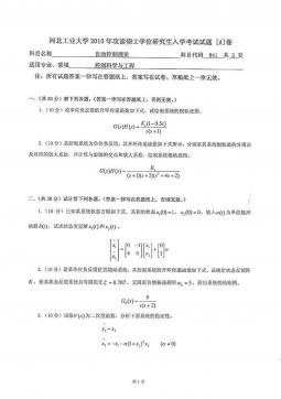 河北工业大学980自动控制理论(含经典及现代控制理论)2010年考研真题答案