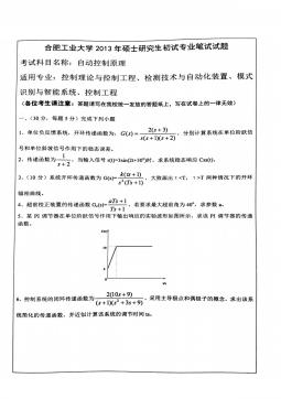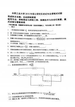 合肥工业大学834自动控制原理2010年考研真题答案