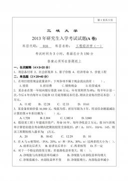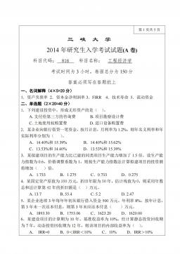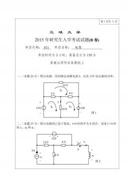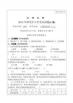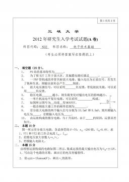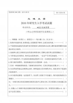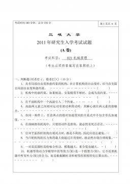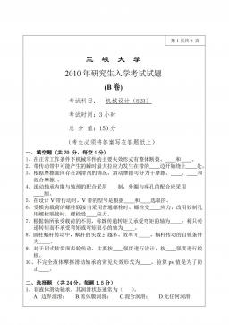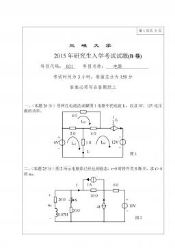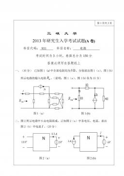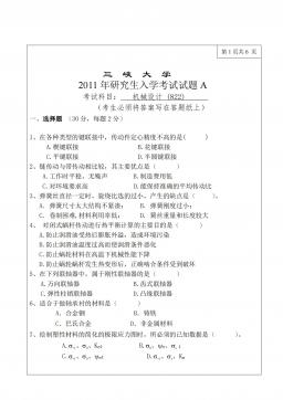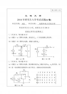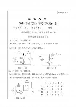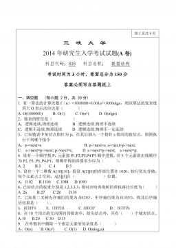 第1页共4页三峡大学2014年研究生入学考试试题(A卷)科目代码:838科目名称:数据结构考试时间为3小时,卷面总分为150分答案必须写在答题纸上一、填空题(每小题2分,共30分)1.有一算法的计算次数f(n)=1000000+0.001n2+1000nlgn,则该算法的复杂度用大O表示法应该是(B.O(1))C.O(n2)D.O(nlgn)A.O(1000000)2、链表的特征是(A.逻辑连续,物理连续C.逻辑不连续,物理连续)B.逻辑连续,物理不连续D.逻辑连续,物理不一定连续3、已知链表中某结点指针为p,在其后插入一个指针s指向的新结点,则需执行下列哪个指令A.p->next=sC.s-...