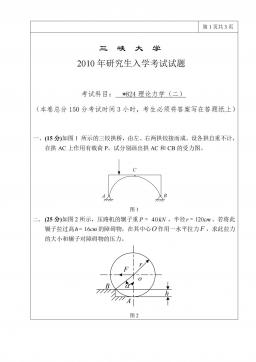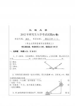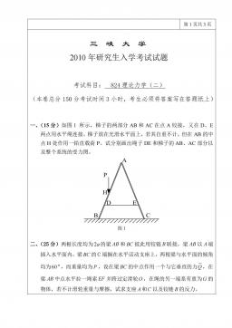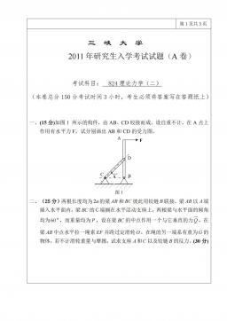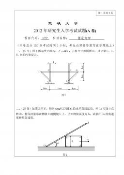 第1页共6页三峡大学2012年研究生入学考试试题(A卷)科目代码:821科目名称:机械设计(考生必须将答案写在答题纸上)一、选择题(30分,每题2分)1、传动轴工作时承受(A.转矩和弯矩)B.弯矩C.转矩D.摩擦力矩2、为了减少蜗轮刀具数目,有利于刀具标准化,规定()为标准值。A.蜗轮齿数C.蜗杆头数B.蜗轮分度圆直径D.蜗杆分度圆直径3、弹簧丝直径一定时,旋绕比选的过小,产生的缺点是()。A.弹簧尺寸太大结构不紧凑;C.卷制困难,材料利用率低;B.弹簧刚度过小;D.簧丝重量和长度较大4、在载荷不平稳且具有较大的冲击和振动的场合下,宜选用()联轴器。A.固定式刚性B.可移式刚性C.弹性D.安全...
