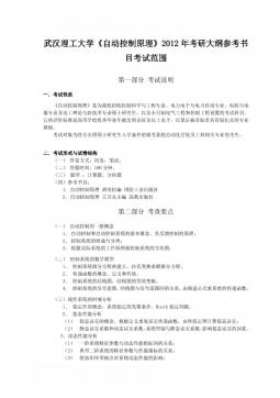 武汉理工大学848自动控制原理考研大纲参考书目及考试范围
