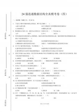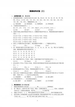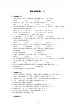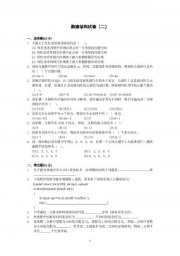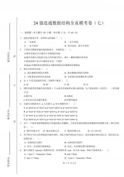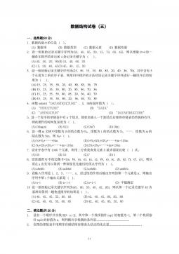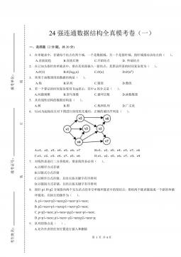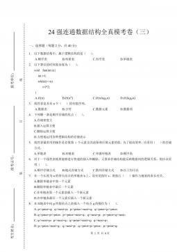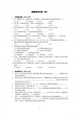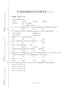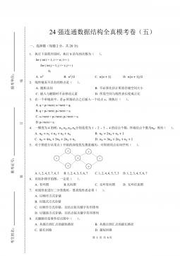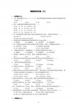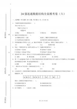 23数据结构试卷(十)一、选择题(24分)1.下列程序段的时间复杂度为()。i=0,s=0;while(snext=p->next;p->next=-s;(B)q->next=s;s->next=p;(C)p->next=s->next;s->next=p;(D)p->next=s;s->next=q;4.设输入序列为1、2、3、4、5、6,则通过栈的作用后可以得到的输出序列为()。(A)5,3,4,6,1,2(B)3,2,5,6,4,1(C)3,1,2,5,4,6(D)1,5,4,6,2,35.设有一个10阶的下三角矩阵A(包括对角线),按照从上到下、从左到右的顺序存储到连续的55个存储单元...