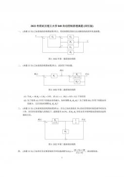 武汉理工大学848自动控制原理2022年真题答案回忆版