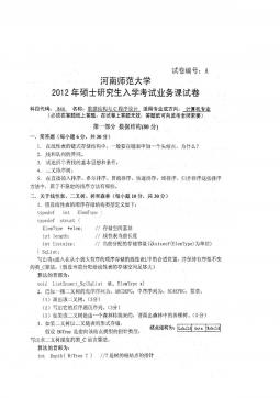 河南师范大学846数据结构与C程序设计2019年真题答案