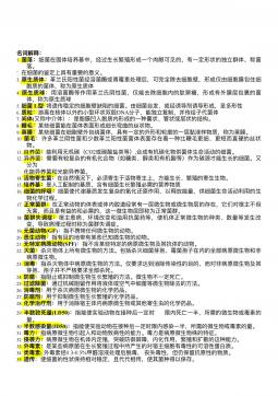 兽医微生物学重要知识点汇总绪言1、微生物学的定义:研究微生物形态、生理、遗传变异、生态分布以及其与人类关系的科学,广义的微生物学还包括免疫学,甚至还包括寄生虫学,特别是原虫学。2、微生物的特点:①个体微小,需借助显微镜观察,其群体可见。②结构简单,繁殖快,分布广。③比较面积大(有利于物质交换,代谢繁殖)。④易变异,适应性强。3、微生物的种类:三型八大类(三菌四体一病毒)真菌细胞型:细胞核有核膜、核仁,细胞器完整。Eg:真菌。原核细胞型:仅有原始核,无核仁、核膜,细胞器很不完善。DNA和RNA同时存在(拟核/核体)Eg:细菌、放线菌、支原体、衣原体、立克次体、螺旋体。非细胞型微生物:最小的一类微...