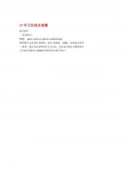 11年卫生综合真题流行病学一.名词英文;SPIR,agent,reservoir,genetic,epidemiology第四版书总论部分罹患率,流行疫源地,SMR,实验流行病学二.简答:我认为应该将所有文字记忆,尤其是可能出大题的部分1.历史队列研究与前瞻队列研究的主要不同点?11年卫生综合真题流行病学一.名词英文;SPIR,agent,reservoir,genetic,epidemiology第四版书总论部分罹患率,流行疫源地,SMR,实验流行病学二.简答:我认为应该将所有文字记忆,尤其是可能出大题的部分1.历史队列研究与前瞻队列研究的主要不同点?3.队列研究的主要偏性4.实验流行病学中...