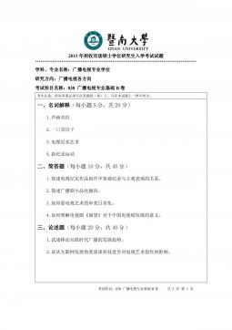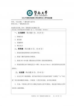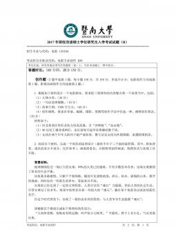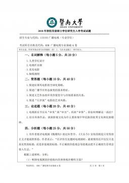 2018年招收攻读硕士学位研究生入学考试试题(A)********************************************************************************************招生专业与代码:电影135104考试科目名称及代码:电影专业创作839考生注意:所有答案必须写在答题纸(卷)上,写在本试题上一律不给分。答题时长:180分钟;满分150分。创作题(2题中选做1题,每小题150分,共150分,多选不计分;电影创作方向选做第1题,影视动画创作方向选做第2题。)1.根据如下场景、人物,完成以下4个小题。场景:超市中有一个悲伤的人。(1)...