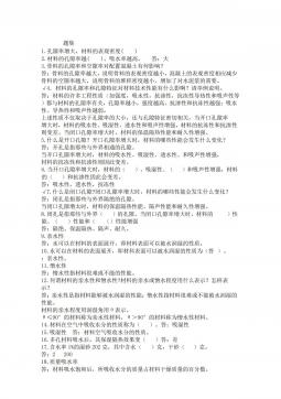 河南大学1.对于开口微孔材料,当其孔隙率增大时,材料的密度不变,吸水性增强,抗冻性降低,导热性降低,强度降低。2.与硅酸盐水泥相比,火山灰水泥的水化热低,耐软水能力好,干缩大.3.保温隔热材料应选择导热系数小,比热容和热容大的材料.4.硅酸盐水泥的水化产物中胶体水化硅酸钙和水化铁酸钙.水化铝酸钙,水化硫铝酸钙晶体5.普通混凝土用砂含泥量增大时,混凝土的干缩增大,抗冻性降低.6.普通混凝土配合比设计中要确定的三个参数为水灰比、砂率和单位用水量.7.钢材中元素S主要会使钢的热脆性增大,元素P主要会使钢的冷脆性增大.8.含水率为1%的湿砂202克,其中含水为2克,干砂200克.9.与建筑石灰相比,建...