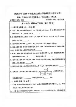 兰州大学805电子线路基础(模拟电路、数字电路)2014年真题1