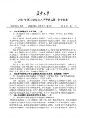 2010年615硕士上研究生入学考试试题参考答案一、辨析题1、错误。亲眼所见的,有些是对客观事物的真实反映,有些则是不符合客观事实的虚假反映或骗局。必须用实事求是的科学态度加以分析,由感性认识上升为理性认识,才能判真假,得到对事物的正确认识。该命题夸大感觉在认识中的作作用,将感觉与事实相混淆。在理论上容易导致主观唯心论,在实际生活中容易产生荒谬的判断。2、正确(1)实践是使物质世界分化为自然界与人类社会的历史前提,又是使自然界与人类社会统一起来的现实基础。在实践活动中,物质世界被区分为自然界和人类社会两大领域。他们都具有客观实在性,相互联系、相互作用。(2)实践是人类社会的基础,是理解和解释一...
