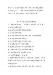 黑龙江八一农垦大学2019年硕士研究生招生考试试题(A)科目代码:_342科目名称:农业知识综合四(农业管理)注:答案一律写在答题纸上,写在此页面上无效。第一部分农业经济学(共50分)一、判断对错(对的划√,错的划x,每题1分,共10分)1、农业具有多种功能2、农业产业结构具有多层次性的特点3、农业就是指种植业4、农业的基础地位会因为农业从业人员的减少而降低5、农业必须坚持可持续发展6、没有经过人类劳动的土地没有价格7、农业生产也可以产生负外部性8、我国的无公害农产品一定是绿色农产品9、中国的食安全必须立足国内自主解决10、农民是农业生产结构调整的主体二、论述(每题20分,共40分)1、我国养...