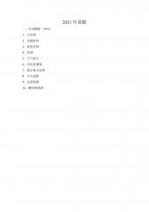 2021年真题答案一、名词解释(10*4)1、立体角2、比辐射率3、密度分割4、纹理5、大气校正6、对比度增强7、基尔霍夫定律8、中心投影9、定量遥感10、瞬时视场角二、简答题(5*10)1、标准假彩色合成中植被的颜色,解释原因植被在可见光波段(0.38-0.76µm)有一小的反射峰,位置在0.55µm处,在近红外波段(0.7-0.8µm)有一个反射的“陡坡”,至1.1µm附近有一个峰值。根据标准假彩色的合成原理,绿波段被赋予蓝,红外波段被赋予红,绿色和红色相加为品红,但红多绿少2、合成孔径侧视雷达的原理(考纲26页)3、K-Means算法的步骤4、ETM+、QuickBird、MODIS遥感...