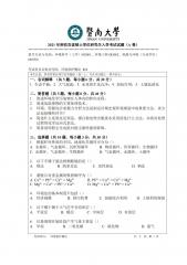 2021年招收攻读硕士学位研究生入学考试试题********************************************************************************************招生专业与代码:光学工程(080300)考试科目名称及代码:数字电子技术(820)考生注意:所有答案必须写在答题纸(卷)上,写在本试题上一律不给分。一、单项选择题(共10小题,每小题3分,共30分)1.八位D/A转换器的最小电压增量为0.01V,当输入代码为10010001时,输出电压为()V。A.1.28B.1.54C.1.45D.1.562.在一个8位的存储单元中,...
