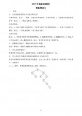 2020年真题答案解析【数据结构部分】一、解释下面概念1、数据的逻辑结构数据的逻辑结构就是反映数据元素之间的逻辑关系的数据结构,其中的逻辑关系是指数据元素之间的前后件关系,而与他们在计算机中的存储位置无关。2、算法算法:由基本运算及规定的运算顺序所构成的完整的解题步骤;设计目标(如何评价):正确性、可读性、健壮性、高效率与低存储要求。3、图的遍历从图的某个端点出发,访遍所有端点,且使每个端点能被访问一次。4、排序?排序就是将原本无序的元素重新排列有序。二、1.2、深度优先遍历结果:1,2,3,5,4/1,3,2,5,4/1,4,5,3,23、4、初始序列:32,23,66,25,74,33,4...