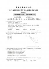 中国科学技术大学2017年硕士学位研究生入学模拟考试试题(物理化学)■需使用计算器□不使用计算器一、选择题(每小题2分,共60分,答案必须写在答题纸上)1、对于理想气体的内能有下述四种理解:(1)状态一定,内能也一定(2)对应于某一状态的内能是可以直接测定的(3)对应于某一状态,内能只有一个数值,不可能有两个或两个以上的数值(4)状态改变时,内能一定跟着改变其中正确的是()(A)(1),(3)(B)(1),(4)(C)(2),(4)(D)(1),(3),(4)2、下图为某气体的p-V图。图中A→B为恒温可逆变化;A→C为绝热可逆变化;A→D为多方不可逆变化。B,C,D态的体积相等。问下述各关系...