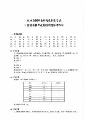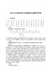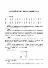 2015年计算机学科专业基础综合试题参考答案一、单项选择题1.A2.9.C10.17.B18.25.D26.33.D34.1.解析:递归调用函数时,在系统栈里保存的函数信息需满足先进后出的特点,依次调用了main(),S(l),S(O),故栈底到栈顶的信息依次是main(),S(1),S(O)。2.解析:根据二叉树前序遍历和中序遍历的递归算法中递归工作栈的状态变化得出:前序序列和中序序列的关系相当于以前序序列为入栈次序,以中序序列为出栈次序。因为前序序列和中序序列可以唯一地确定一棵二叉树,所以题意相当千“以序列a,b,c,d为入栈次序,则出栈序列的个数为多少“,对于n个不同元素进栈,出栈序列的...